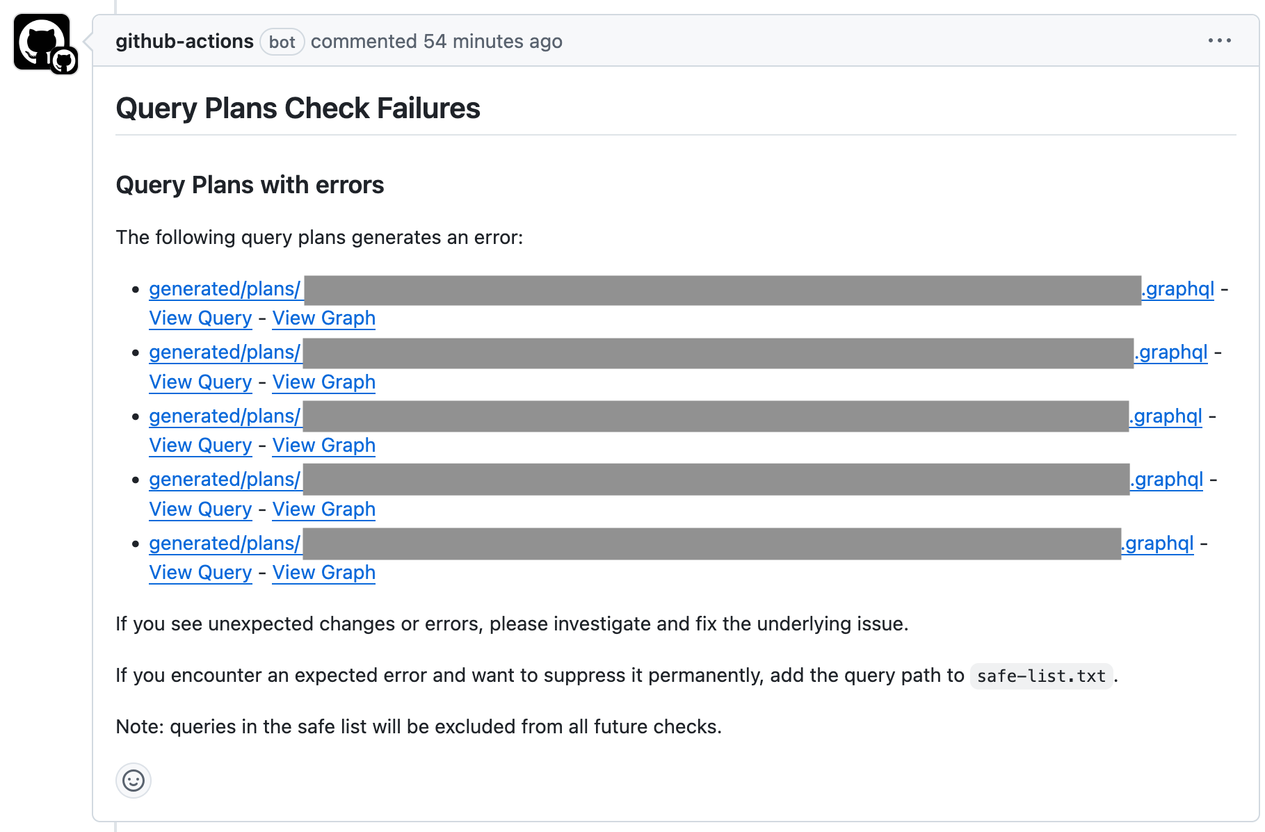 - Another GitHub workflow that runs every time a change is introduced to the Cosmo Router and alerts us if query plans change or new errors appear.