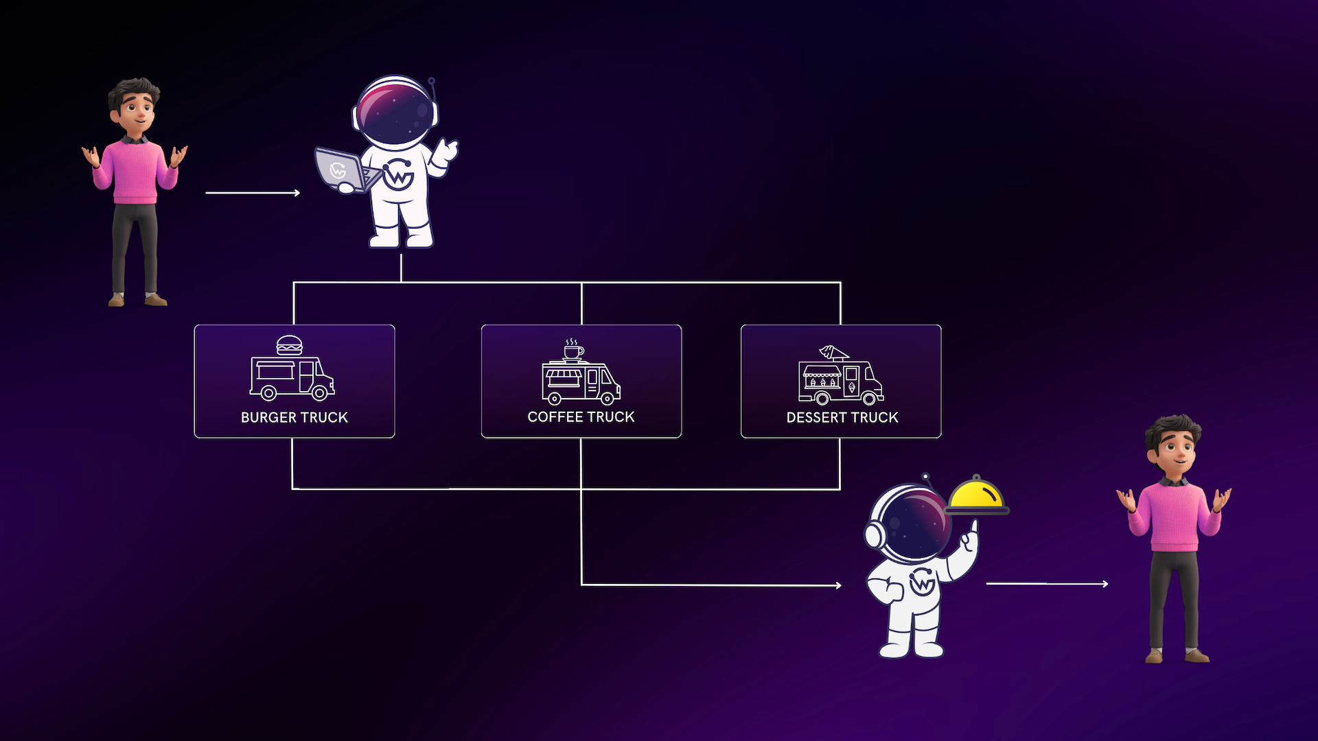 Now we’re stepping behind the counter with Cosmo to see what federation looks like in practice. What happens when menus change, special requests stack up, real-time updates come in, or a truck runs out of a key ingredient? Cosmo’s job is coordination, and this is how he accomplishes it.