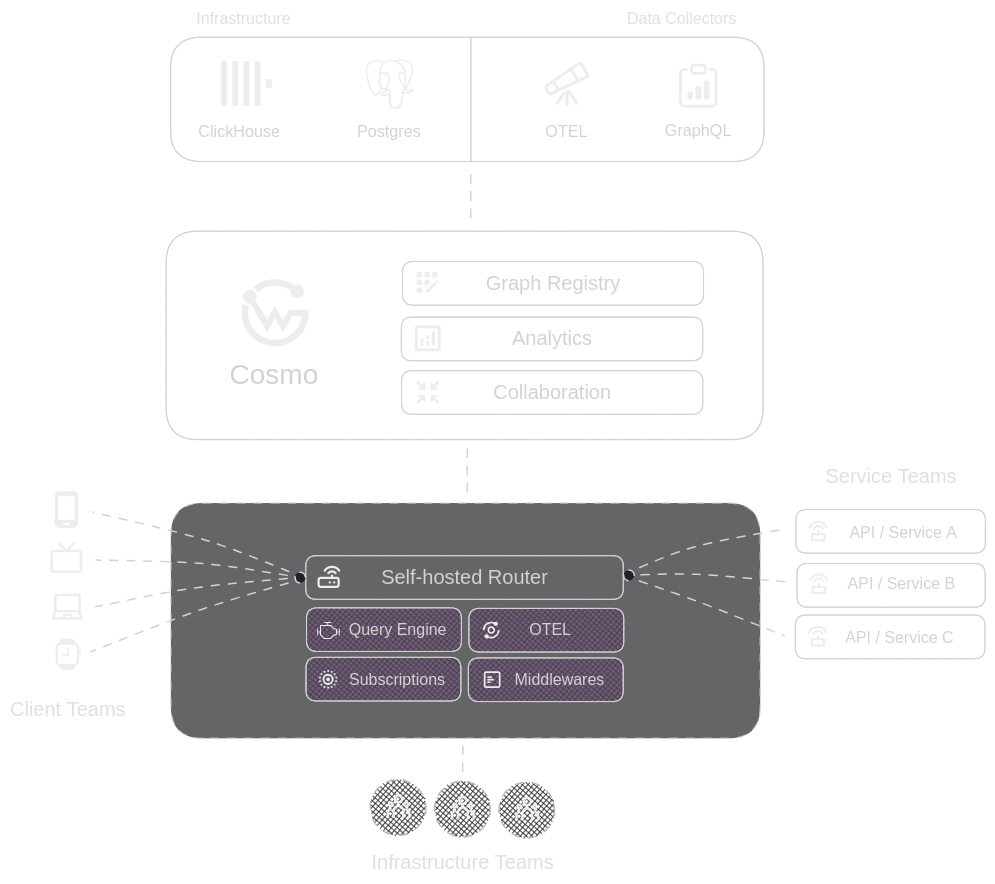 Self Hosting the cosmo router allows us to have more control over our performance, the running costs, networking, tuning of the self hosted router gives us better response times and performance for our website, vs if we used a managed router