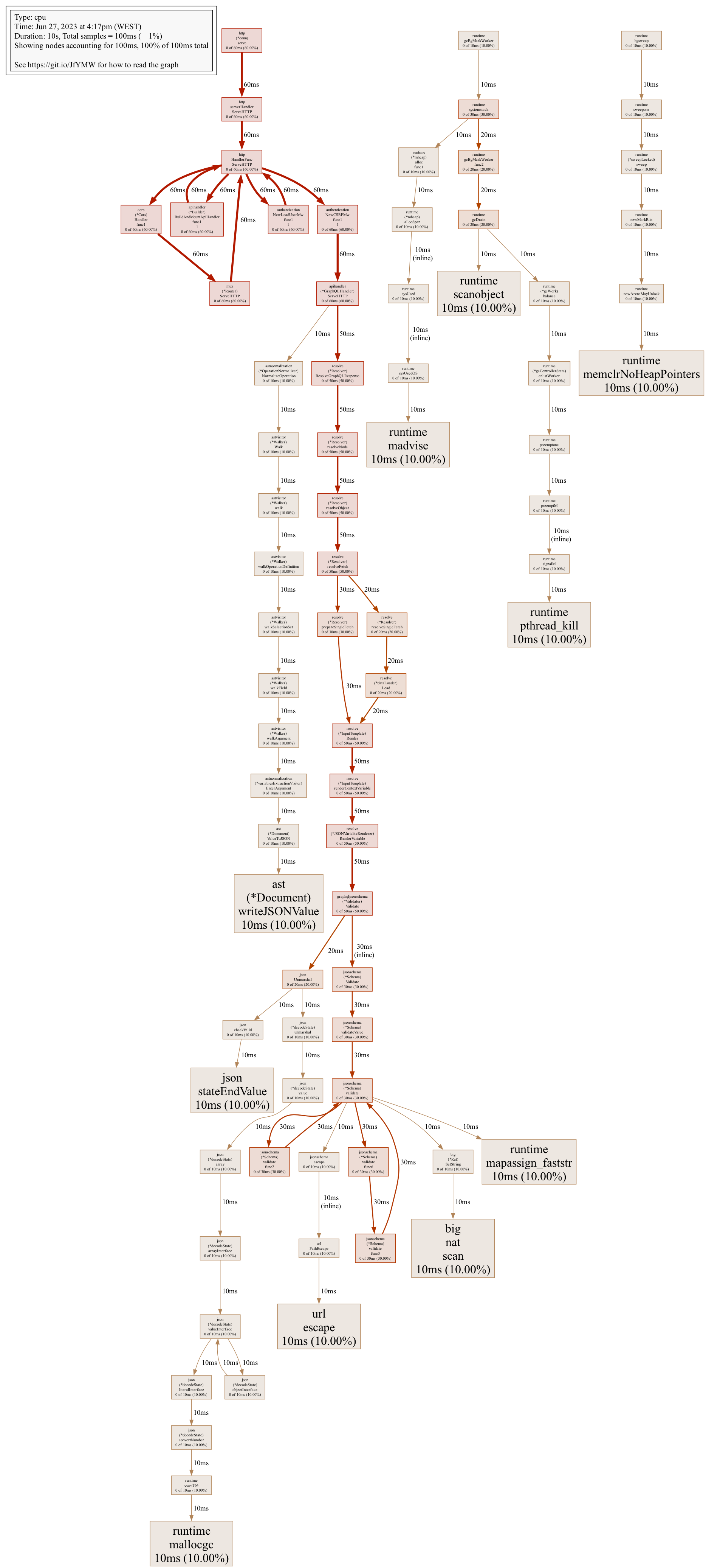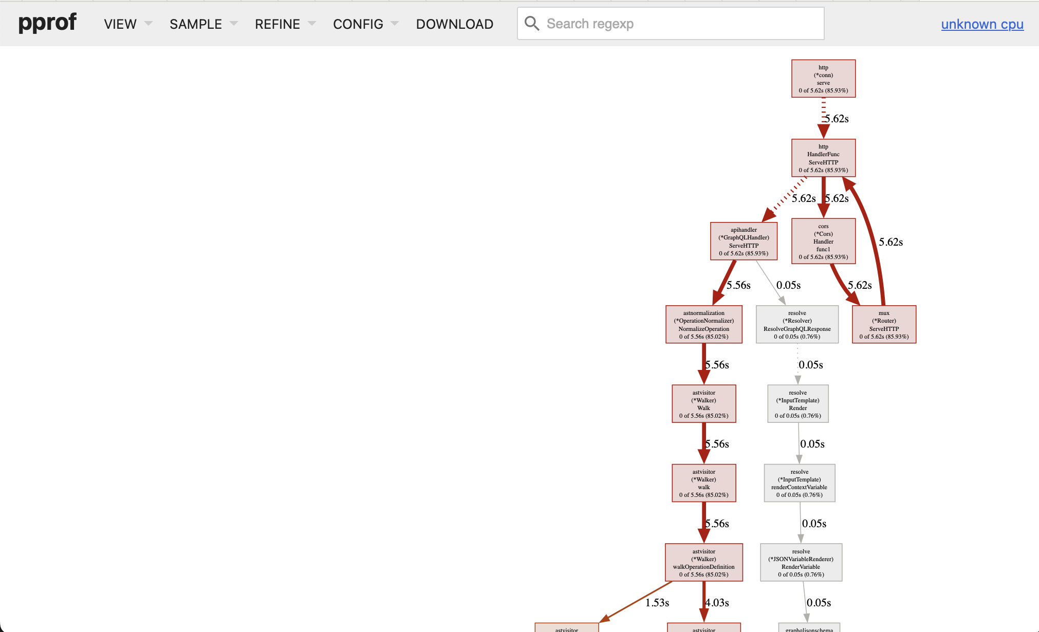 As you might have guessed, graphql-go-tools is written in Go . We chose Go not just because of its simplicity and the productivity the language enables, but also because of the excellent testing, debugging and profiling tools it comes with. While investigating this problem, the most valuable tool was the CPU profiler.